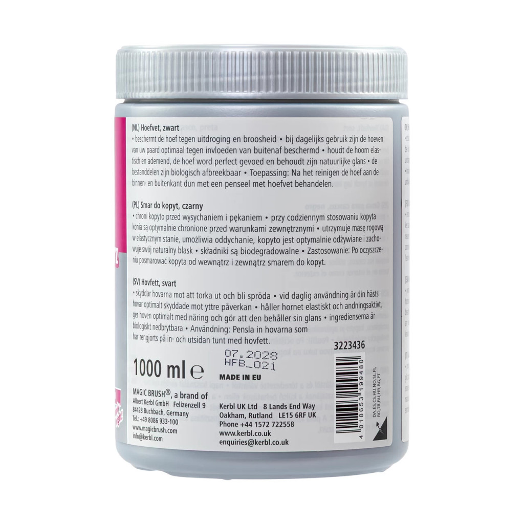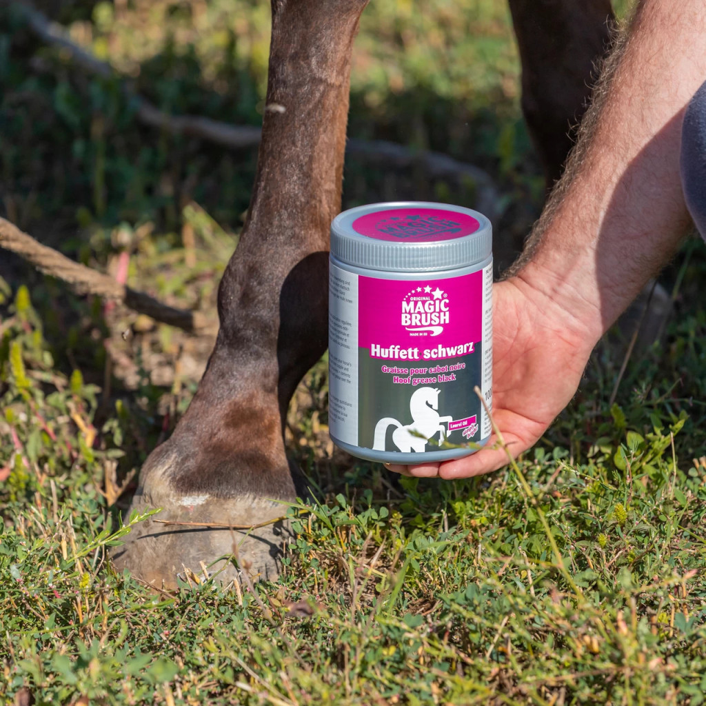 Черният мехлем MagicBrush е специално разработен за цялостна грижа и защита на конските копита. Формулата, базирана на растителни масла, естествени восъци и екстракт от лаврово дърво, работи в хармония с природата, за да поддържа копитата здрави и силни.