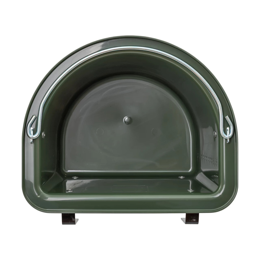 Изработена е от висококачествена, дебела пластмаса, устойчива на удари и атмосферни влияния. Металните компоненти са устойчиви на ръжда, което гарантира дълъг експлоатационен живот дори при интензивна ежедневна употреба. Тъмнозеленият цвят е практичен и се вписва добре в обстановката на ферма или конюшна.