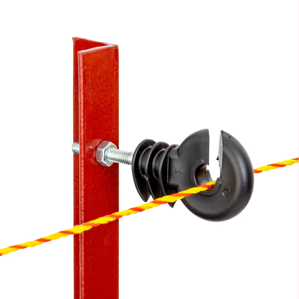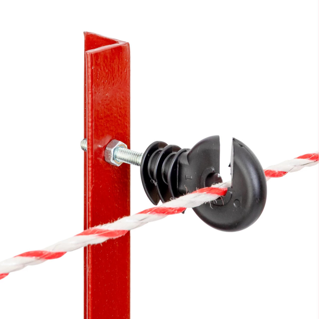 Благодарение на своята здравина и форма, това колче е перфектният избор за междинни опорни точки по протежение на електрическата ограда. За ъглови позиции, краища на оградата или врати препоръчваме използването на по-дебели колчета или укрепващи елементи, монтирани под ъгъл.